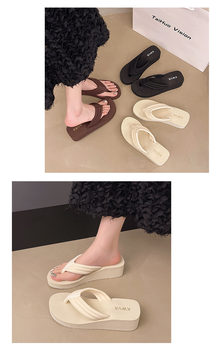 Women's Platform Wedge Sandals - Lightweight Anti-Slip Flip Flops with Comfortable Textured Sole for Summer
