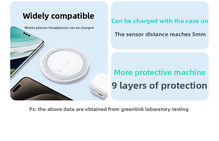 Compatibility: iPhone series, Android phones with wireless charging, wireless earphones