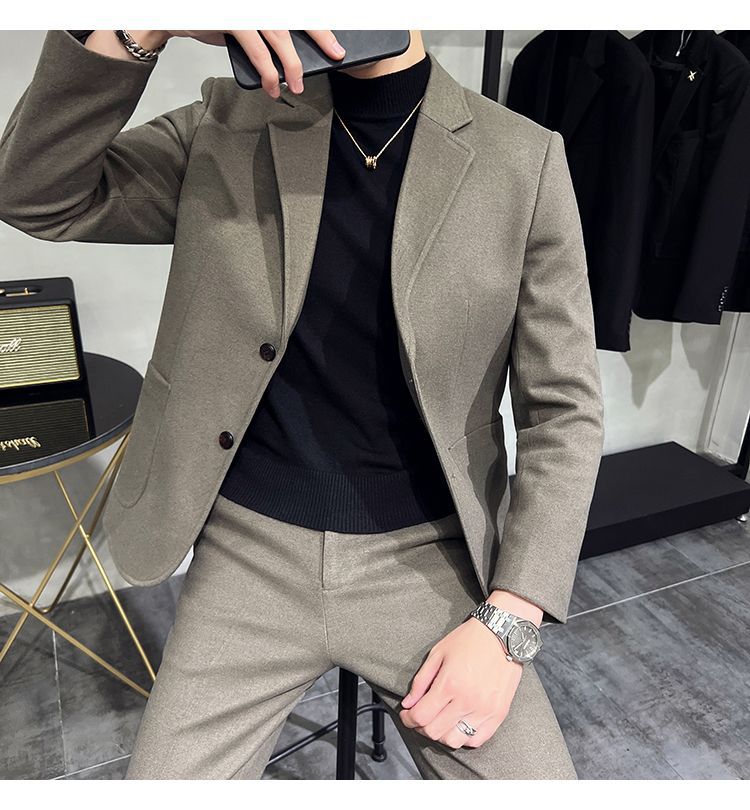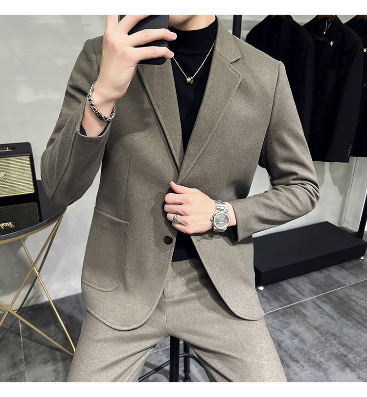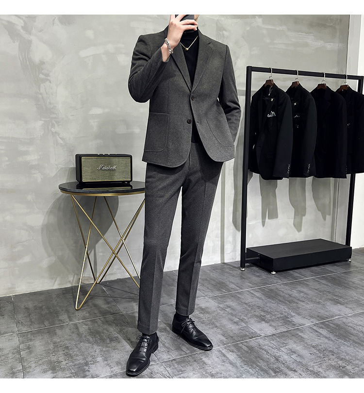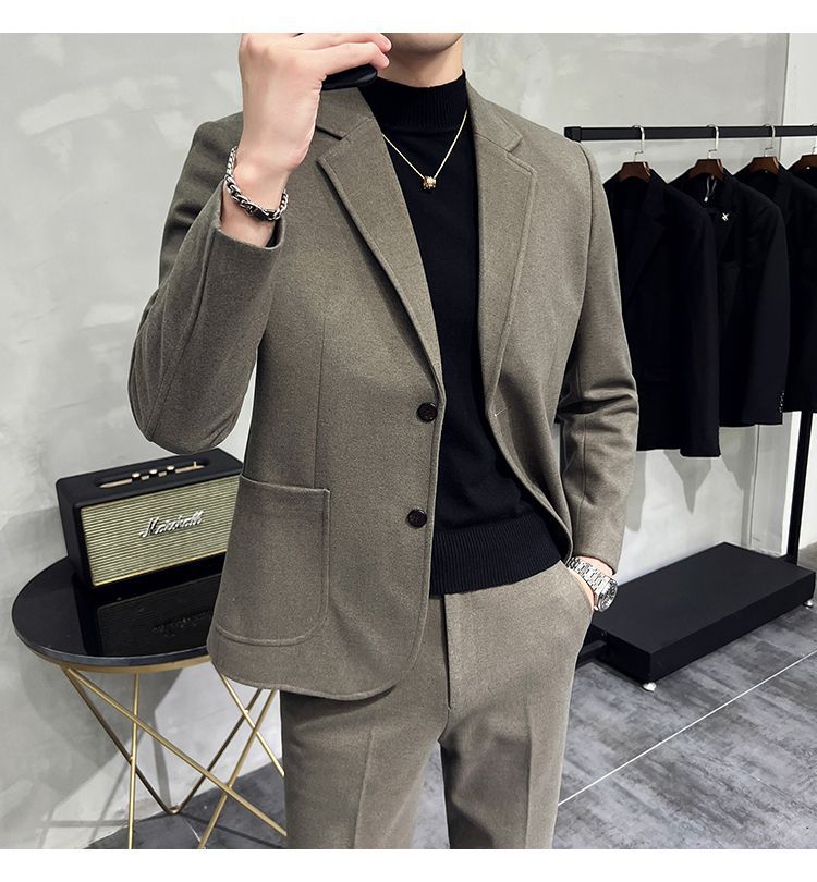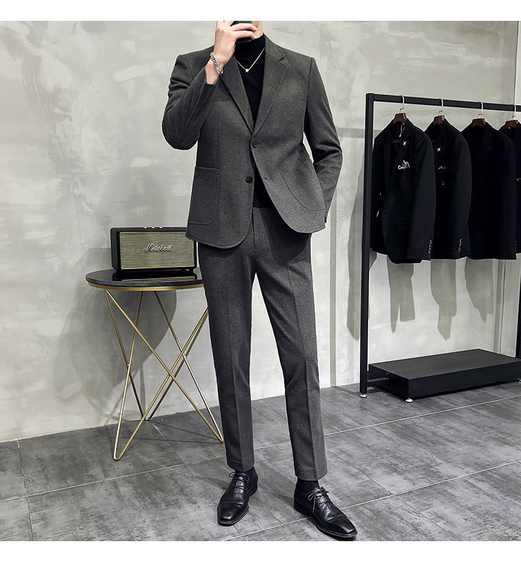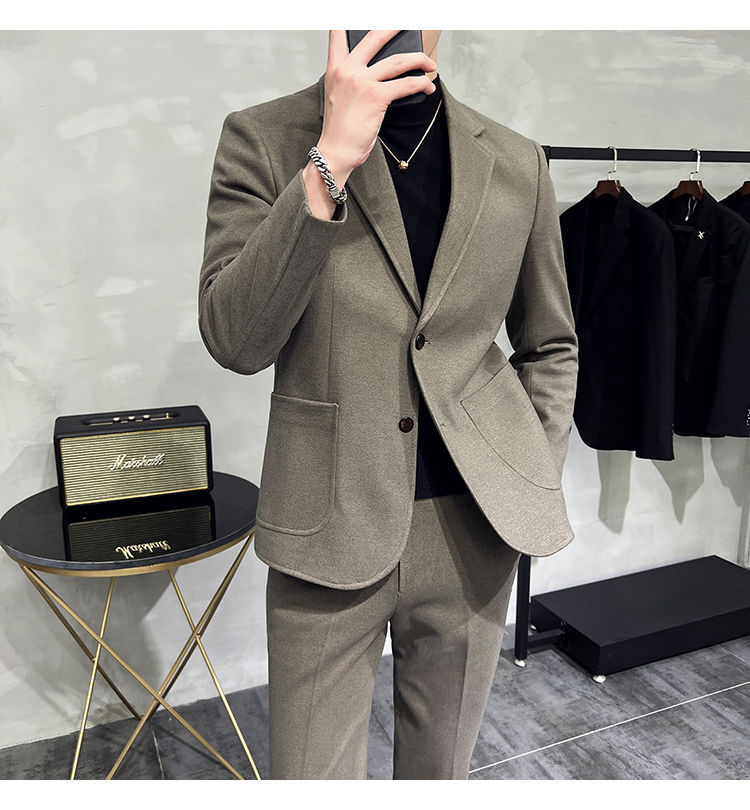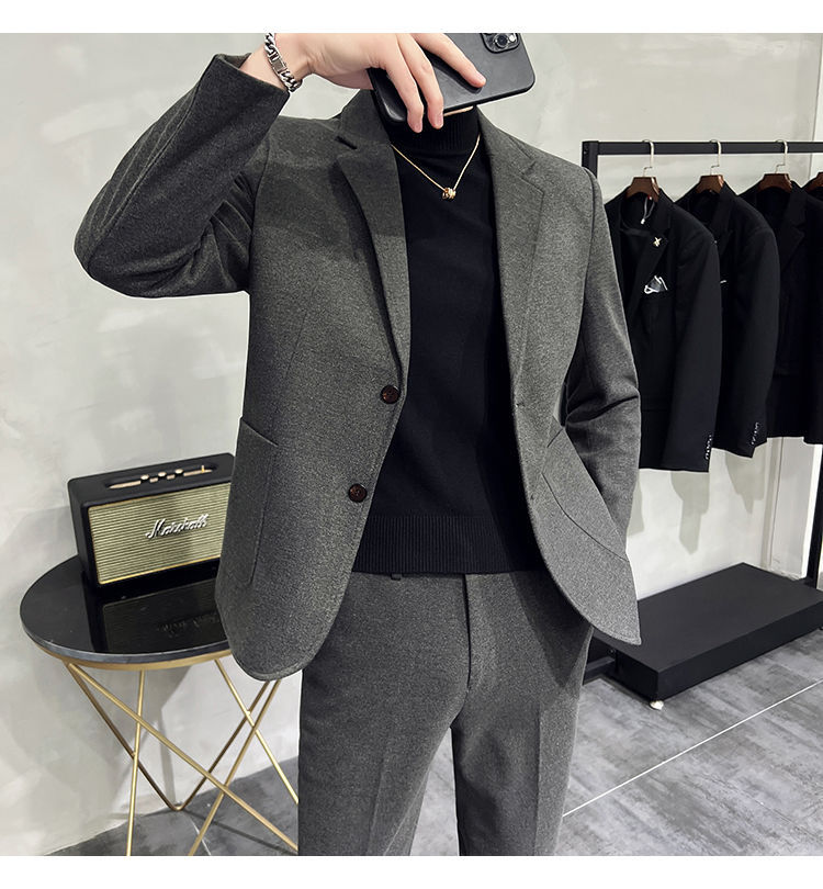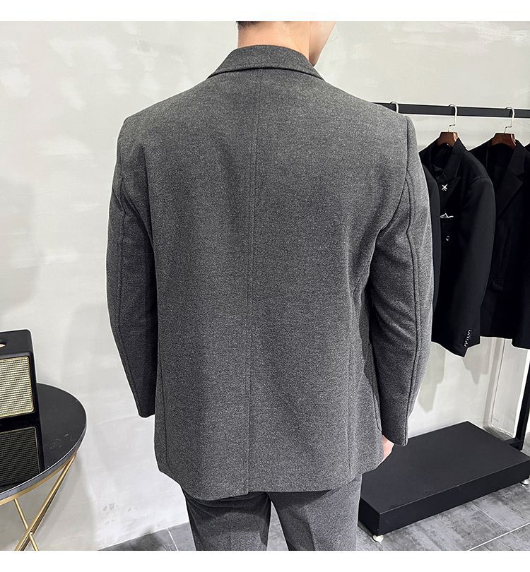 Premium Men's Slim Fit Wool Blend Suit - Stylish Two-Piece Set with Upgraded Sleeve & Button Design for Business & Formal Wear