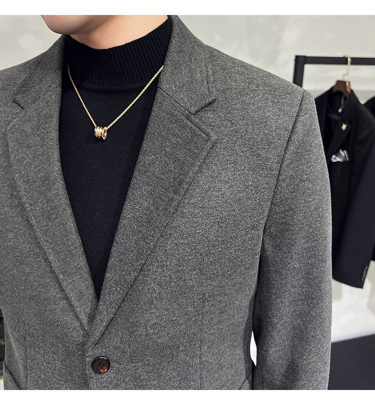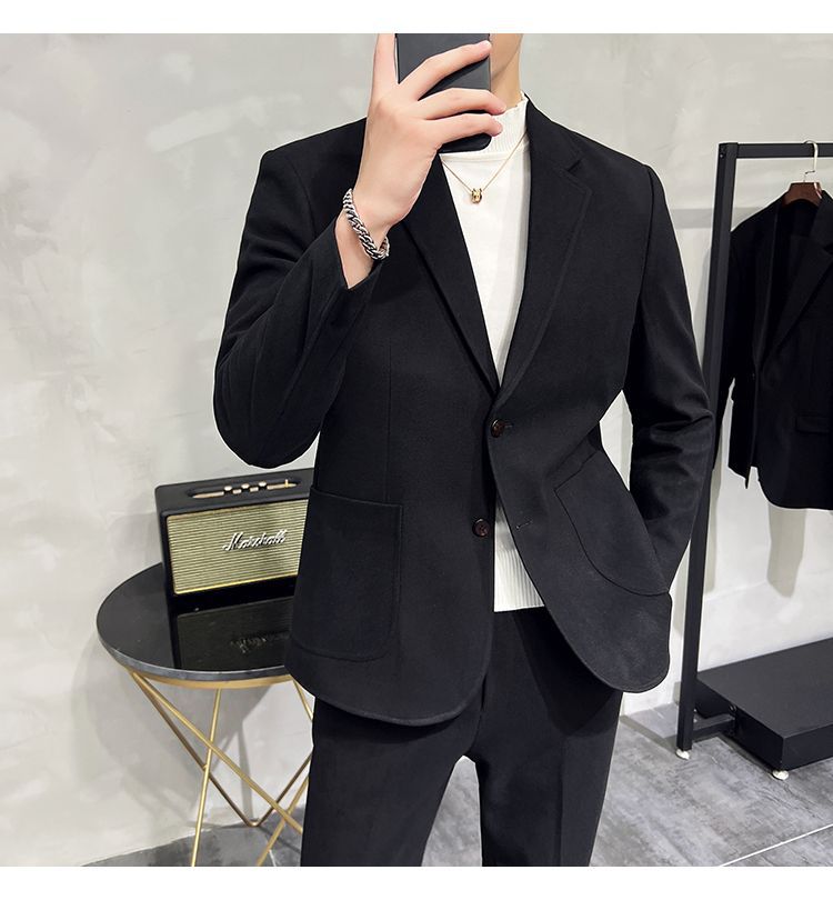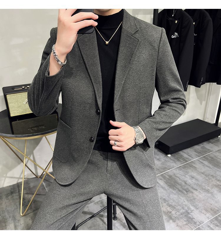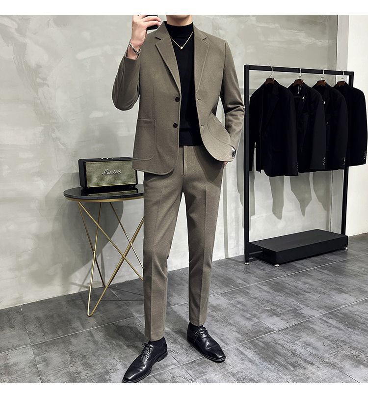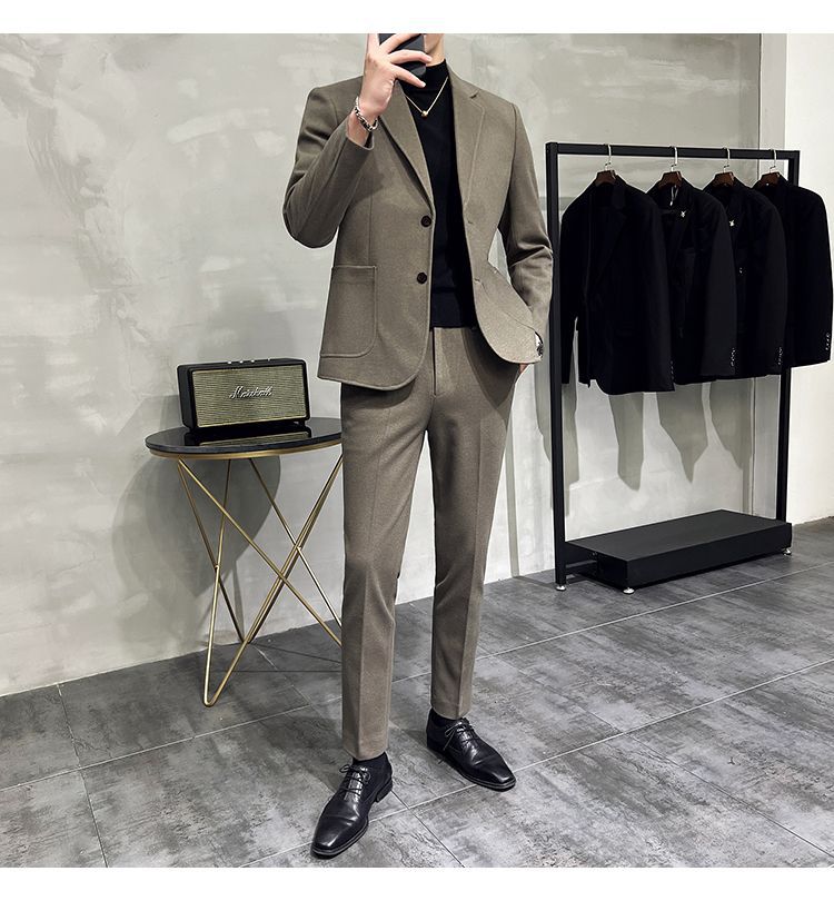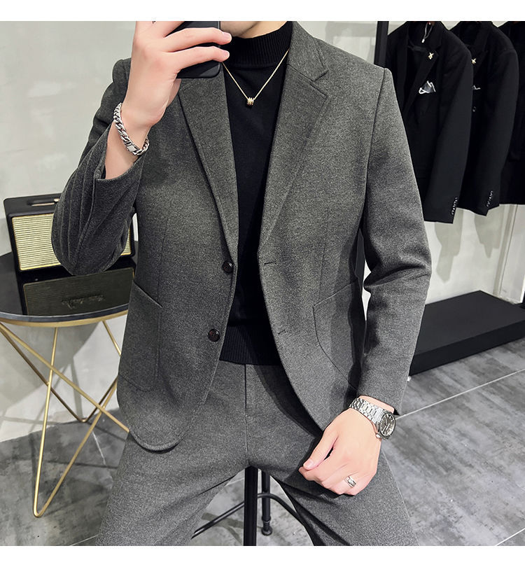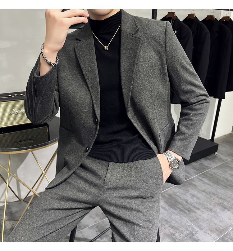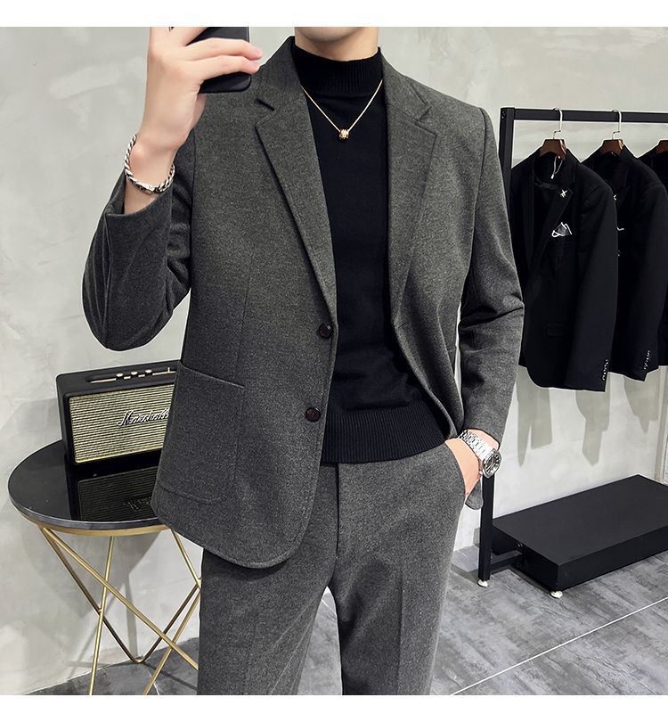 Premium Men's Slim Fit Wool Blend Suit - Stylish Two-Piece Set with Upgraded Sleeve & Button Design for Business & Formal Wear