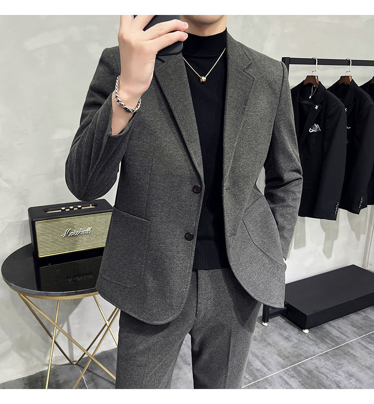 Colors Available: Brown, Dark Gray, Black (as suit sets); Coffee, Dark Gray, Black (as single jackets)