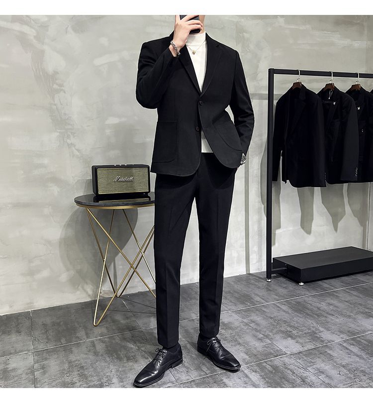 Two-Piece Set: Complete suit includes both jacket and trousers for coordinated styling