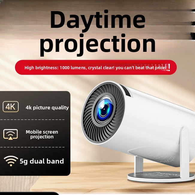 Portable 1080P HD Projector - 180° Rotatable Smart Projector with 5G Dual-Band WiFi & Wireless Screen Sharing