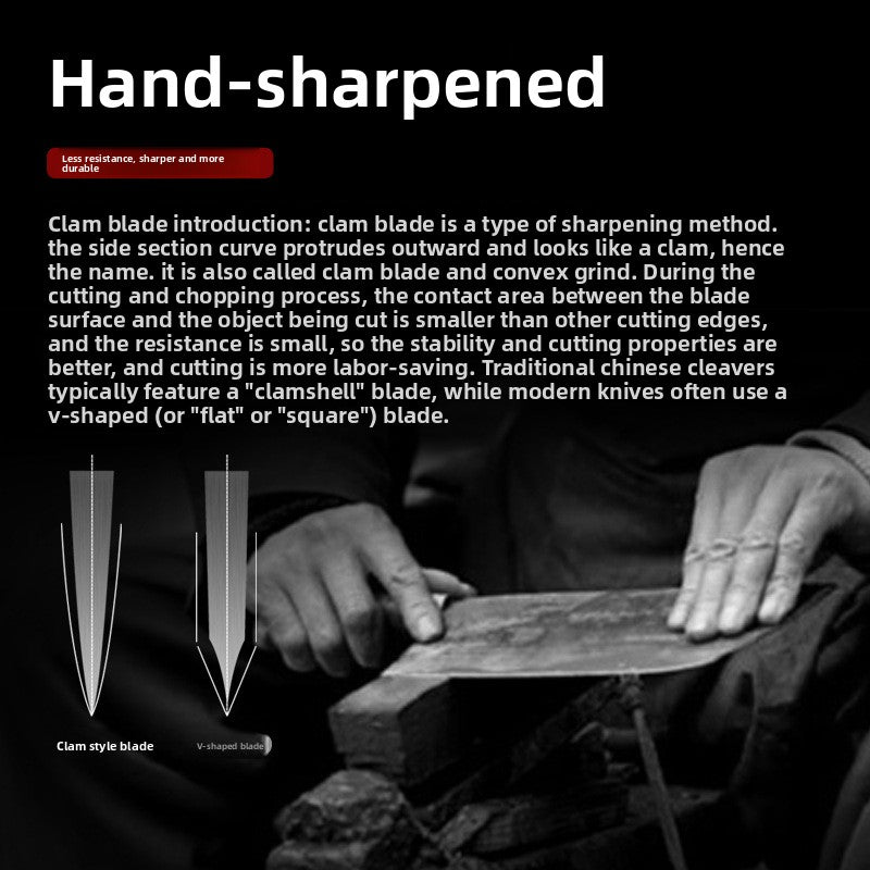 Clam Blade Design - Enhances cutting efficiency with a optimized angle for meat preparation.