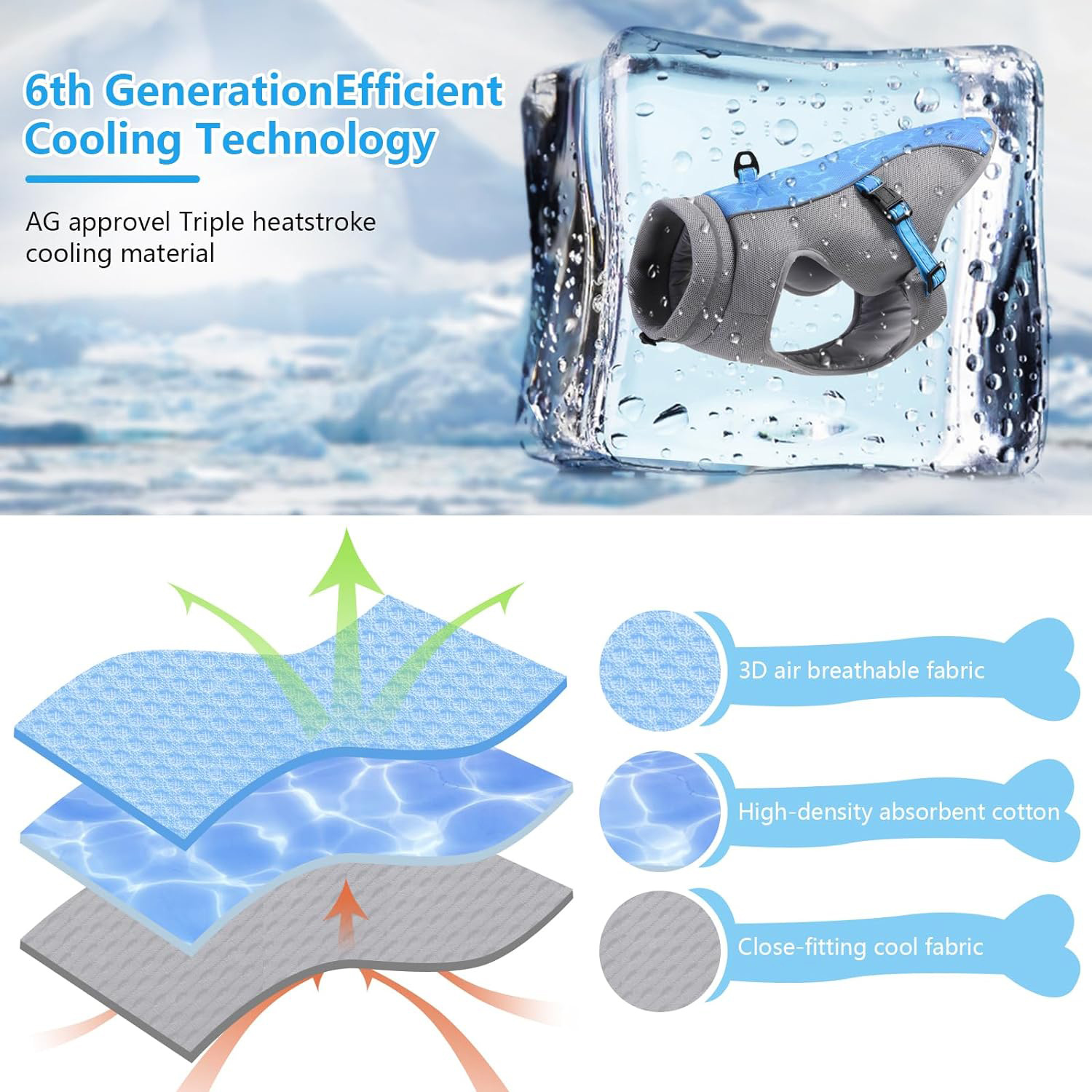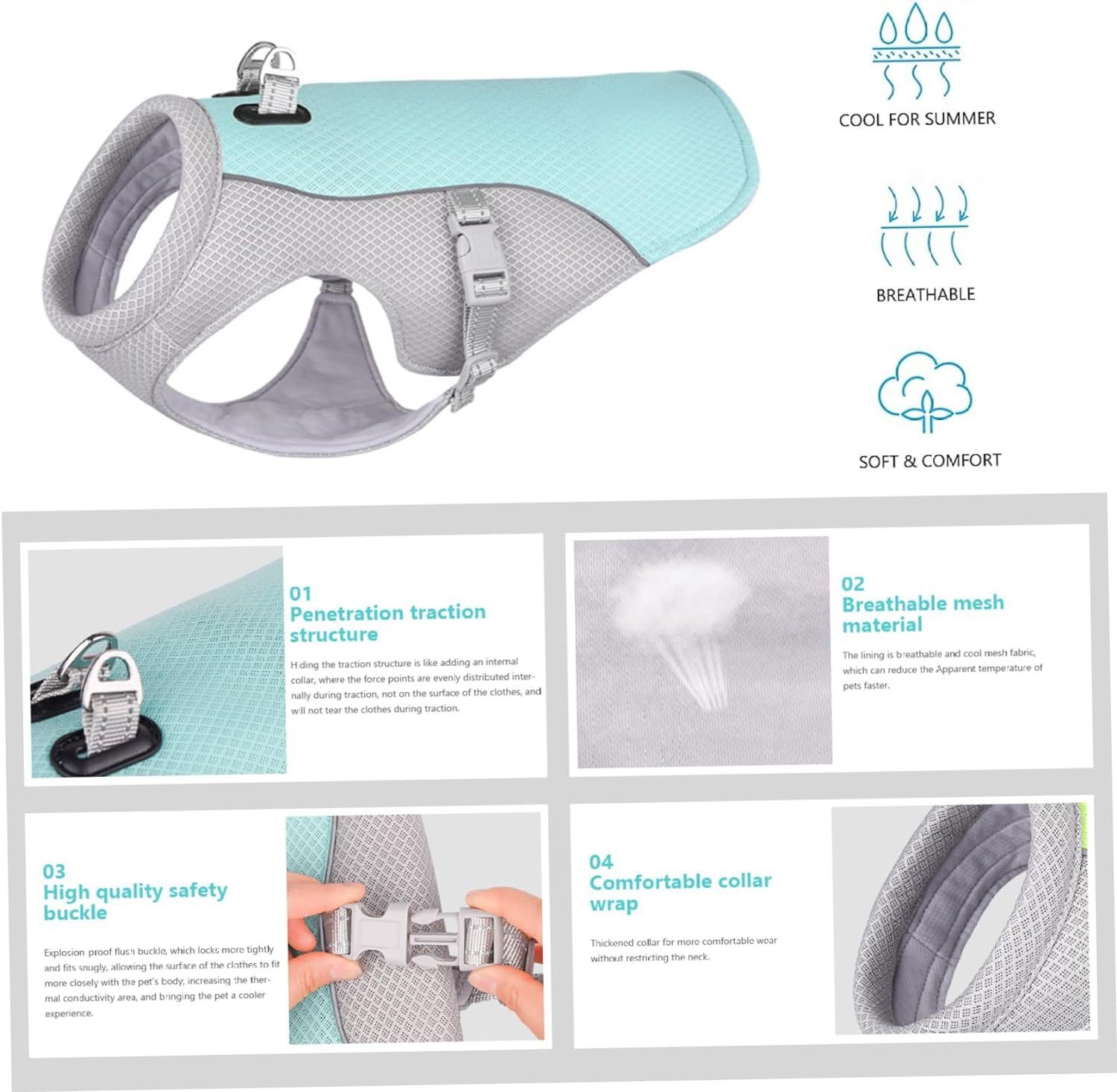 Cooling Design: Specialized cooling technology to help regulate pet's body temperature in summer